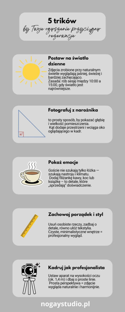 - Infografika: „5 trików, by Twoje ogłoszenie przyciągało rezerwacje.”